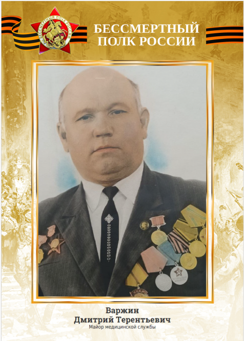 В едином строю Героев дедушка заведующего филиала Можеровой Юлии Владимировны - Варжин Дмитрий Терентьевич, участник ВОВ, майор медицинской службы. Награжден медалью «За боевые заслуги», орденом Красной Звезды, орденами Ленина и Трудового Красного Знамени.