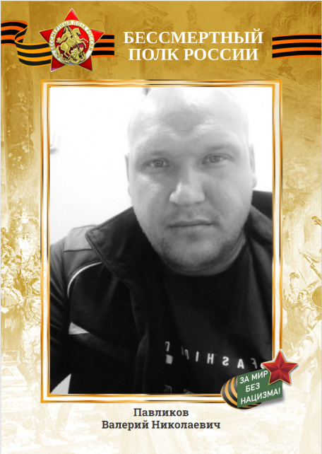 В строю Бессмертного полка – супруг ведущего специалиста филиала Павликовой Татьяны Сергеевны – Павликов Валерий Николаевич, участник СВО. Награжден медалью «За отвагу» посмертно.