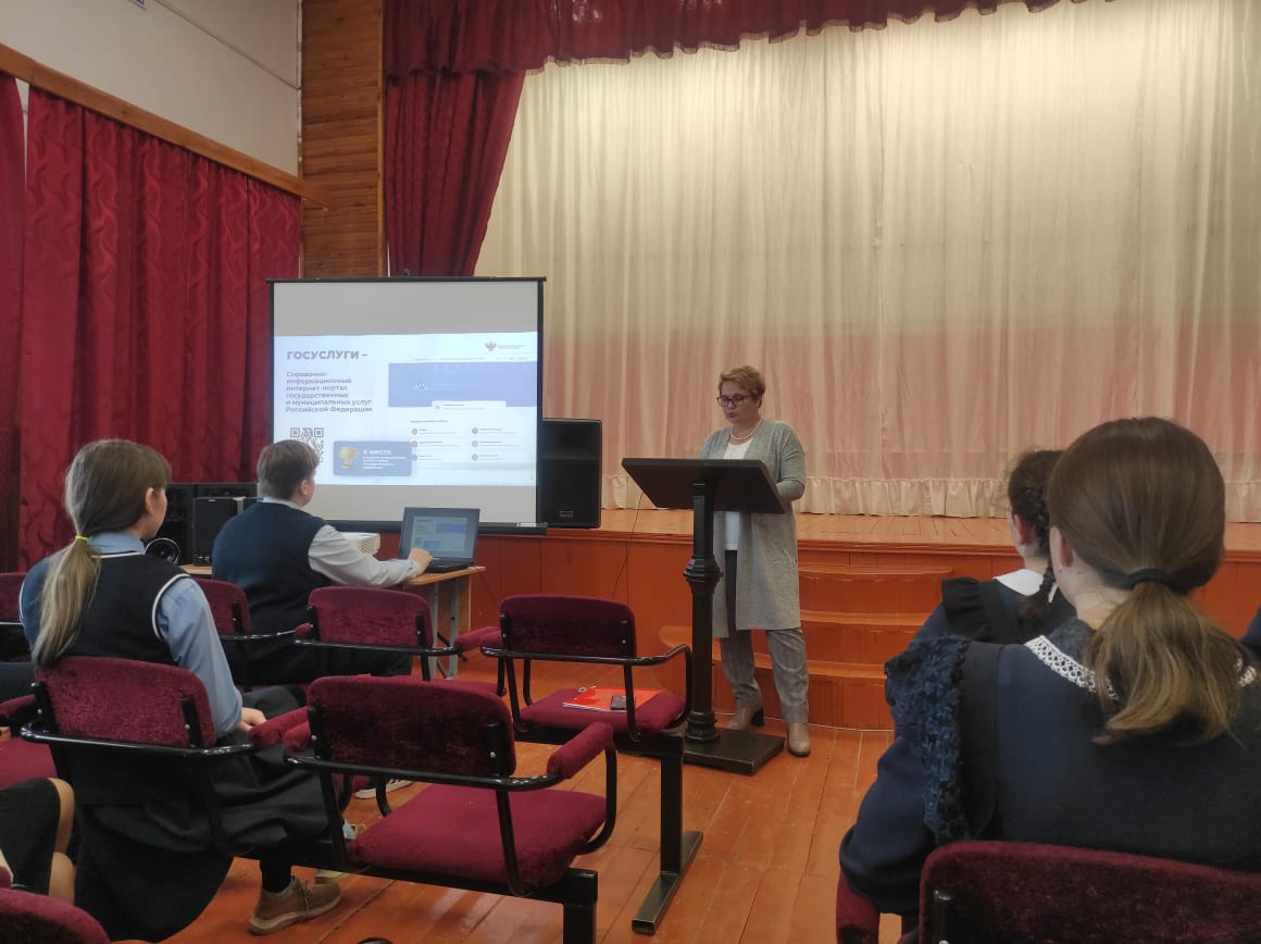 Уроки проводила Заведующий филиала по Ельниковском муниципальному району ГАУ республики Мордовия "МФЦ" Можерова Юлия Владимировна. Целью урока являлось формирование навыков свободного ориентирования и повышение уровня правовой и цифровой культуры обучающихся при работе с государственными цифровыми сервисами.