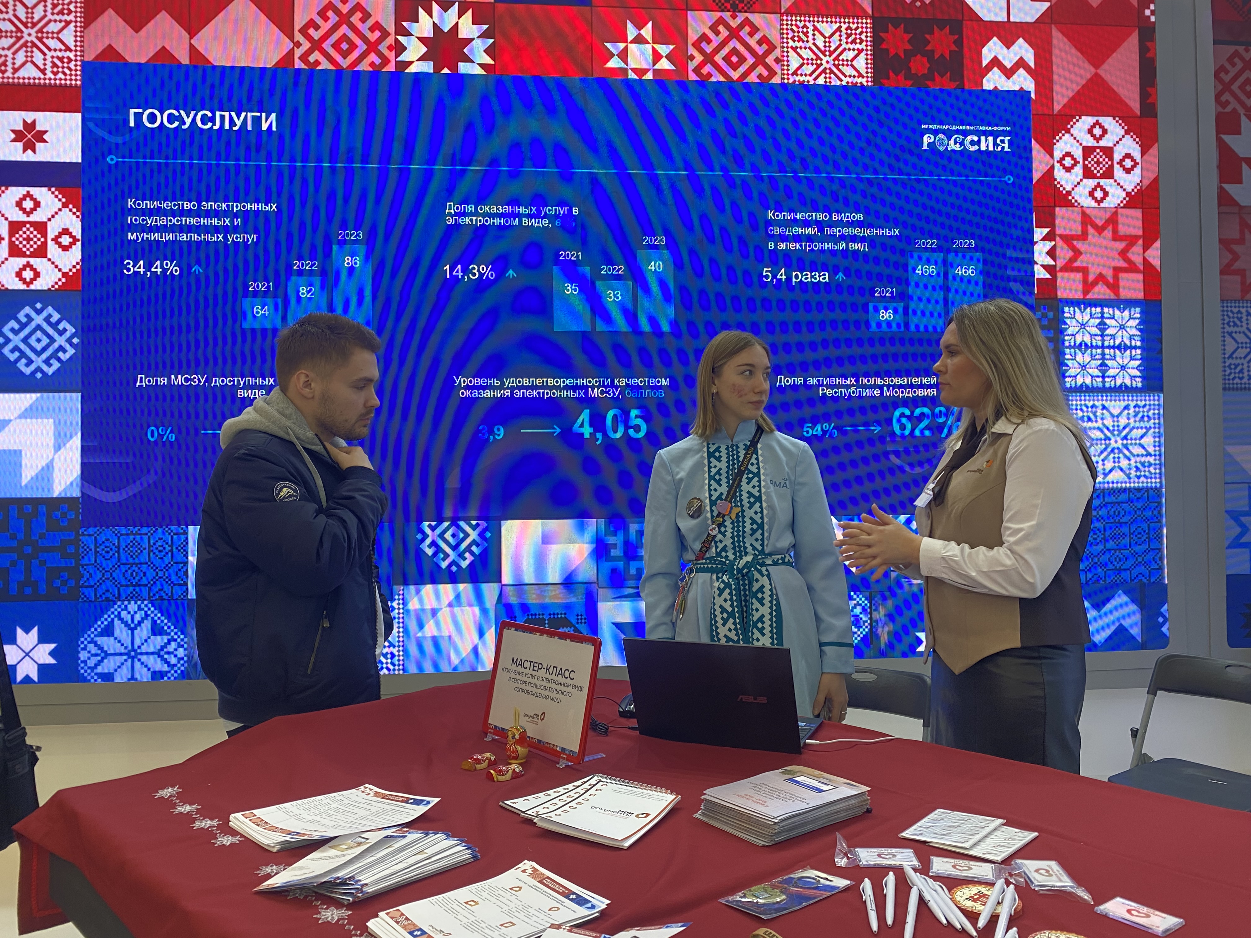 Также в этот день на стенде Республики Мордовия сотрудники ГАУ Республики Мордовия «МФЦ» провели мастер-класс «Получение услуг в электронном виде в секторе пользовательского сопровождения МФЦ». В рамках мастер-класса сотрудники ГАУ Республики Мордовия «МФЦ» рассказывали посетителям стенда о том, как легко и быстро получить электронные услуги в секторе пользовательского сопровождения МФЦ и помогали разобраться с тонкостями работы единого портала, демонстрировали обучающие видеоролики по получению услуг в электронном виде.