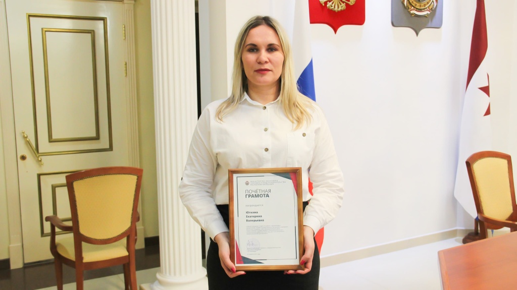 «Принято решение наградить Почетной грамотой Министерства экономики, торговли и предпринимательства РМ за успешную работу в 2021 году главного специалиста отдела по работе с физическими и юридическими лицами Екатерину Юткину и рекомендовать ее к участию во Всероссийском конкурсе «Лучший многофункциональный центр России» в номинации «Лучший универсальный специалист МФЦ» - отметила начальник отдела административной реформы Минэкономики Мордовии Елена Семелева.