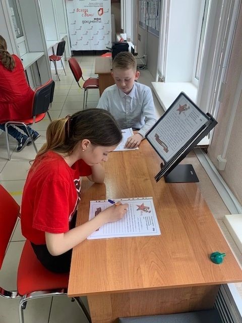 После торжественного вручения паспортов, юные граждане написали «Письма ГЕРОЯМ», которые будут отправлены участникам СВО через сообщество «Своих не бросаем Дубёнский район». Также любой посетитель филиала МФЦ может написать письмо со словами поддержки для военных, несущих службу в зоне СВО, в рамках акции «Георгиевская ленточка».