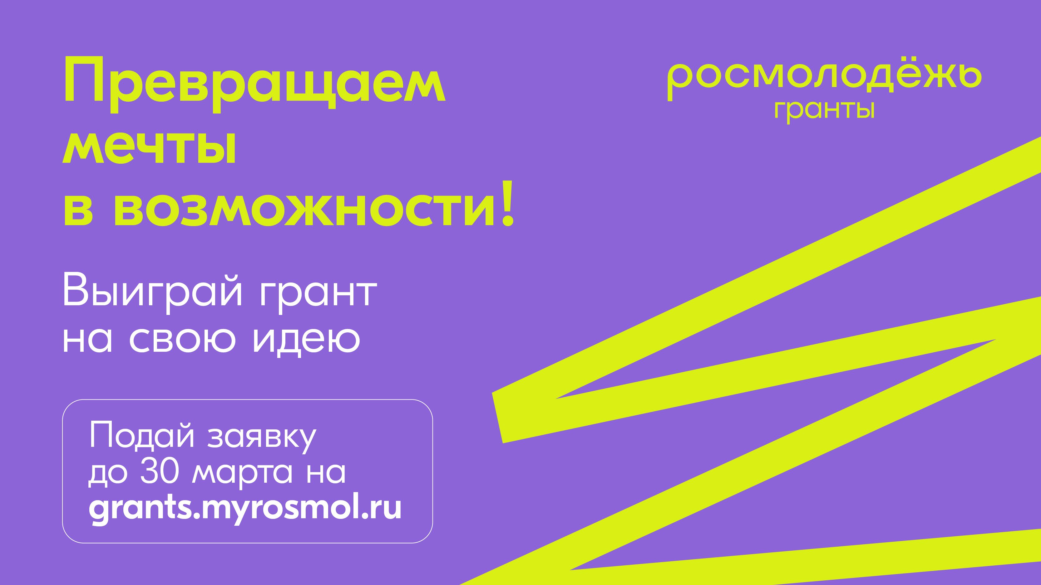Прием заявок осуществляется через автоматизированную информационную систему «Молодежь России» (grants.myrosmol.ru).